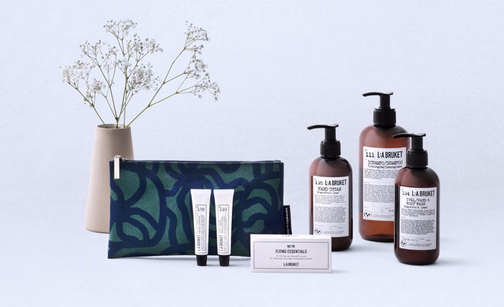 핀에어(Finnair) 새 어메니티 키트에는 스웨덴 유기농 스킨케어 브랜드 라브루켓(L:a Bruket)의 카모마일 라벤더 페이셜 크림과 아몬드 코코넛 립 크림이 포함됐다. 비즈니스 클래스 기내 및 라운지 화장실에서는 라브루켓 손제정제와 핸드크림도 이용 가능하다.