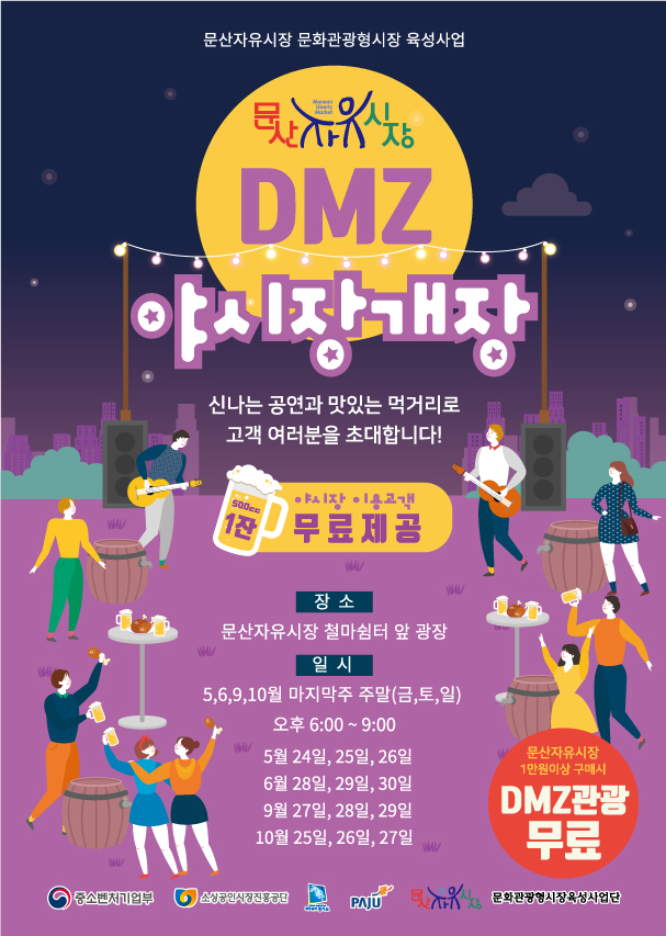 파주 문산자유시장은 24일 오후 6시 문산자유시장 철마쉼터 앞 광장에서 DMZ야시장을 개장한다고 밝혔다.