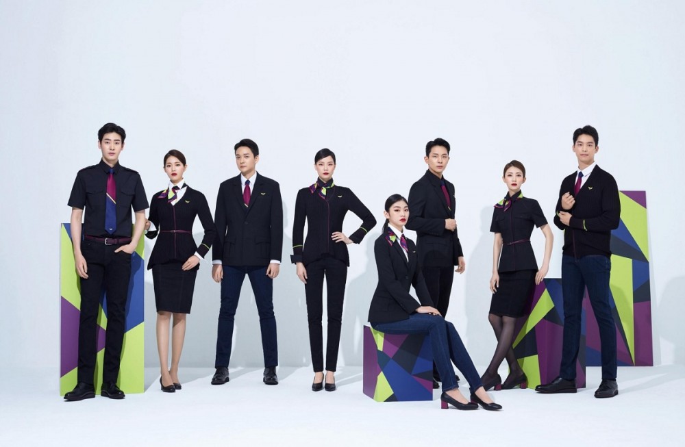 운항승무원은 조종석에 장시간 앉아 근무하는 업무 환경을 고려해 신축성이 좋은 원단의 블랙진을 토대로 한 정복 스타일로 변화했다. 운송 서비스 직군은 고객과의 첫 접점이 이뤄지는 공항 업무 특성을 감안해 데님 소재를 활용한 상의 디자인을 완성함으로써 브랜드 아이덴티티를 강조했다.