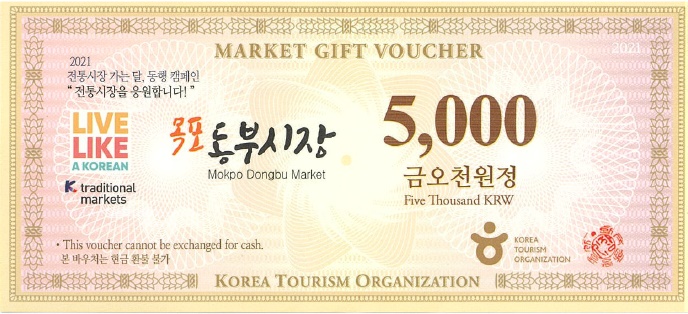동부시장 바우처는 코레일의 관광상품인 내일로를 이용해 목포를 찾는 관광객, 시티투어를 이용하는 관광객·시민에게 제공하며 사용기간은 오는 7월 11일까지다.