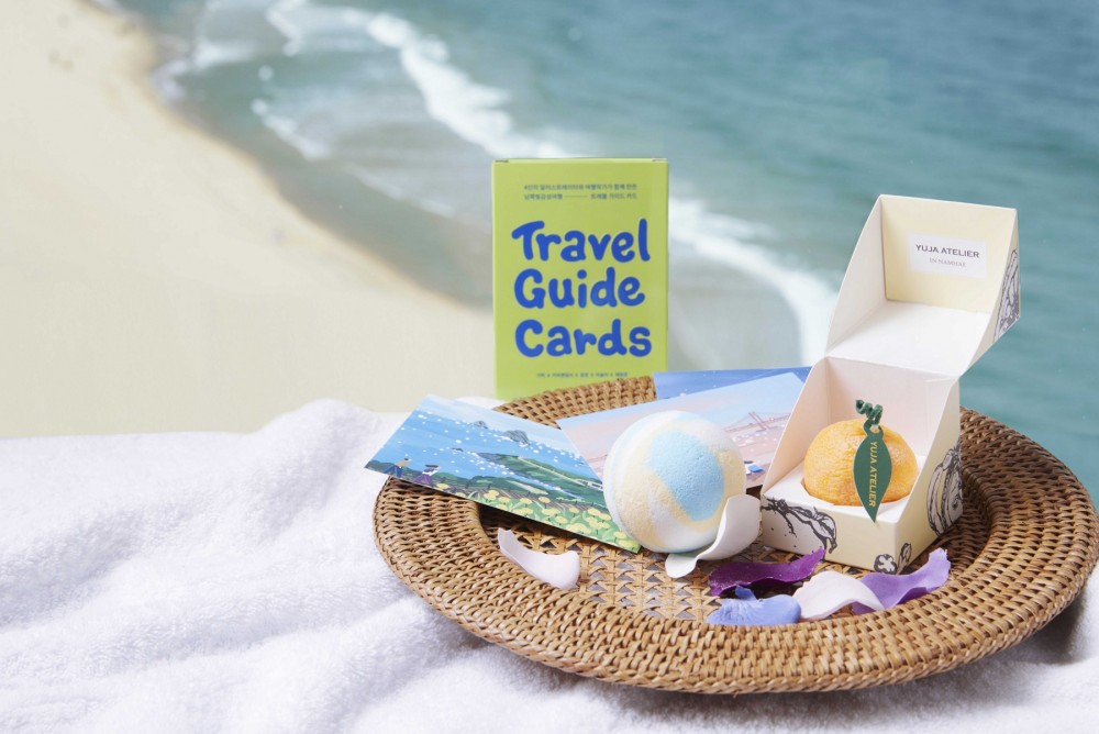 룸콕 남쪽빛 스파 어메니티 키트는 남쪽빛 감성여행 테마로 한국관광개발연구원과 여행 컨텐츠 전문가가 엄선한 부산&경남 여행 큐레이션 한정 상품으로 부산, 남해, 거제, 통영의 주요 관광지를 일러스트 작가들이 그려낸 트래블 가이드 카드와 남해 공방에서 만든 유자향이 나는 유자캔들, 남해 바다를 모티브로 만든 배쓰밤으로 구성했다. 키트에 동봉된 QR코드를 촬영해 바다 소리를 들으며 일상을 내려놓고 나만을 위한 오롯한 휴식을 즐길 수 있다.