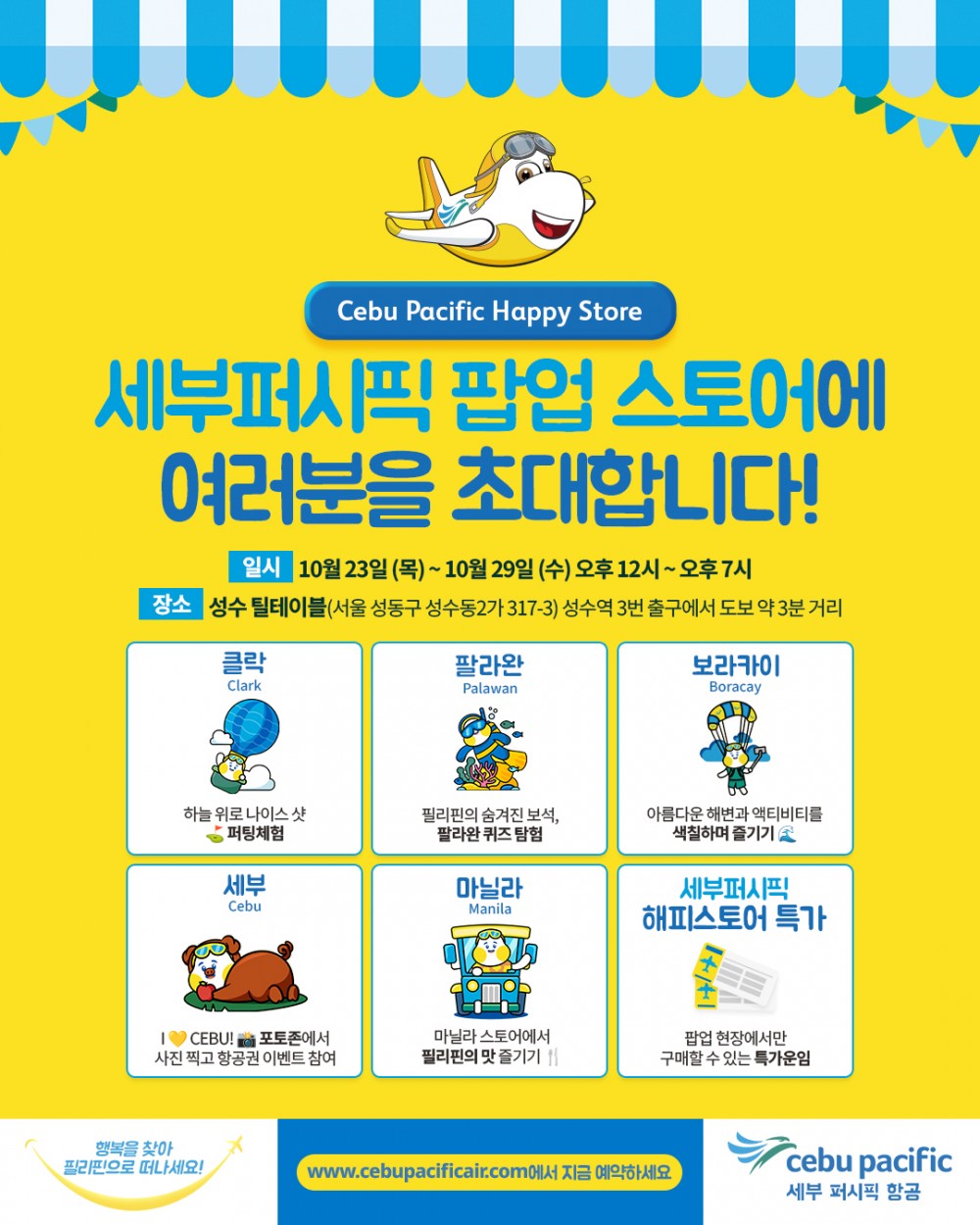 세부퍼시픽항공(Cebu Pacific Air)이 서울 성수동에서 세부퍼시픽 해피 스토어를 운영한다.