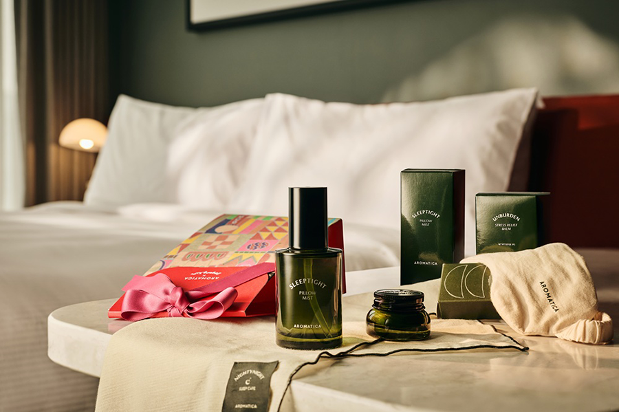 이 패키지는 판교 도심의 시티뷰를 조망할 수 있는 비즈니스 디럭스 객실에서의 1박과 아로마티카의 홀리데이 에디션 기프트 세트를 혜택으로 제공한다.