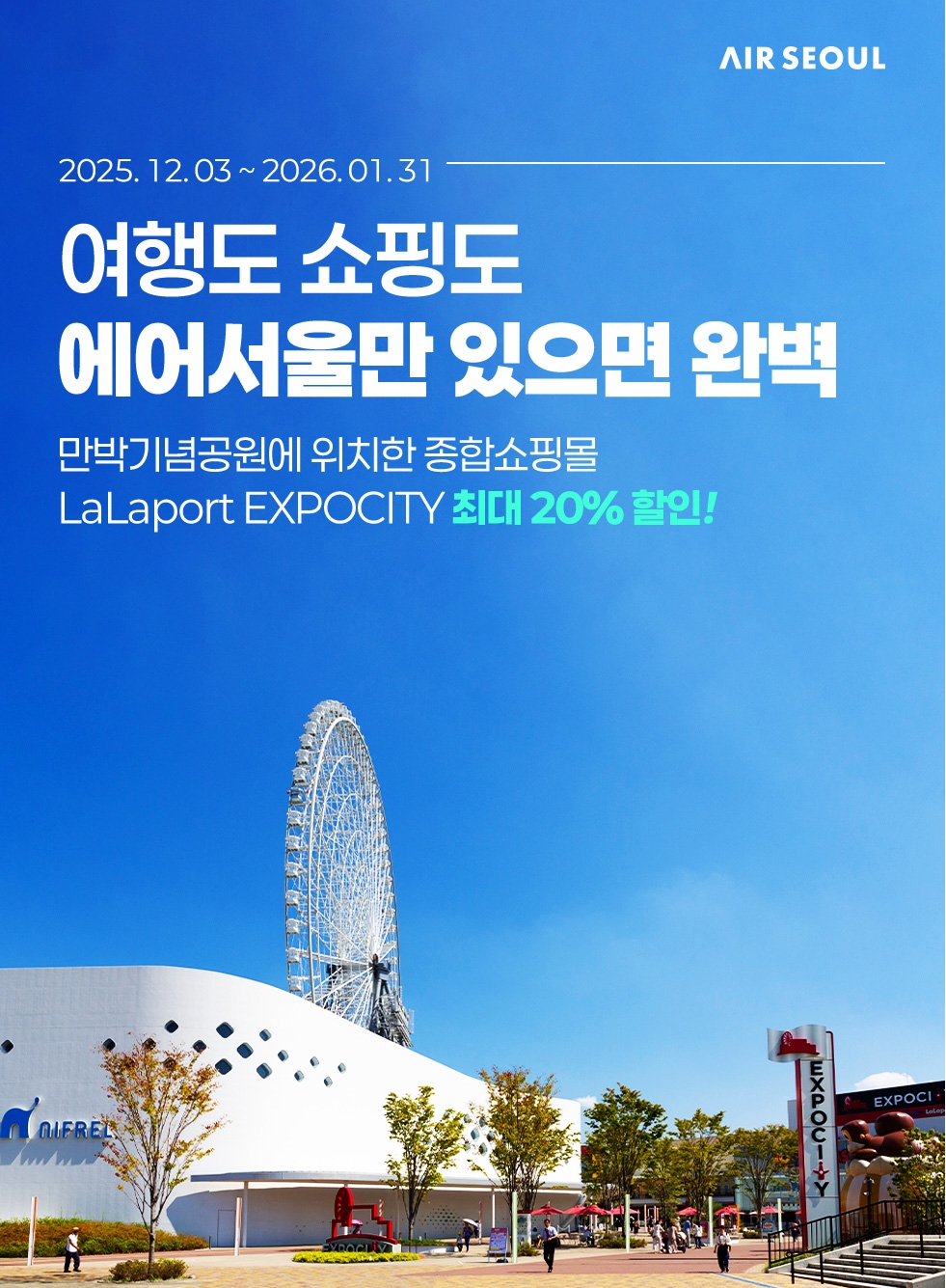 특히, 오사카 노선 이용객은 라라포트 엑스포시티에서 오사카의 랜드마크인 레드홀스 오사카 대관람차, 조명·음악·영상이 결합되어 살아있는 박물관으로 알려진 니후레루 박물관 전시 등 보다 특별한 여행을 경험할 수 있다.