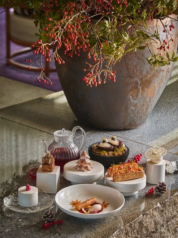 겨울철 대표 음료인 뱅쇼를 재해석한 프리 디저트 바바 오 뱅쇼, 윈터 스파이스 케이크에 마카다미아 프랄린을 층층이 쌓아 진저맨 모양으로 구현한 진저맨, 요거트 크루스티앙과 딸기 콩포트를 담아 오너먼트처럼 완성한 스노우 볼, 피칸·잣 크림과 오렌지 케이크를 초콜릿 나뭇잎으로 감싸 작은 트리 형태로 구현한 미니 크리스마스 트리, 겨울 딸기와 마스카포네 크림을 조합해 클래식한 매력을 담은 딸기 쇼트케이크까지 이어지며 페스티브 시즌 특유의 따스한 정서와 미감을 균형있게 담아낸다.