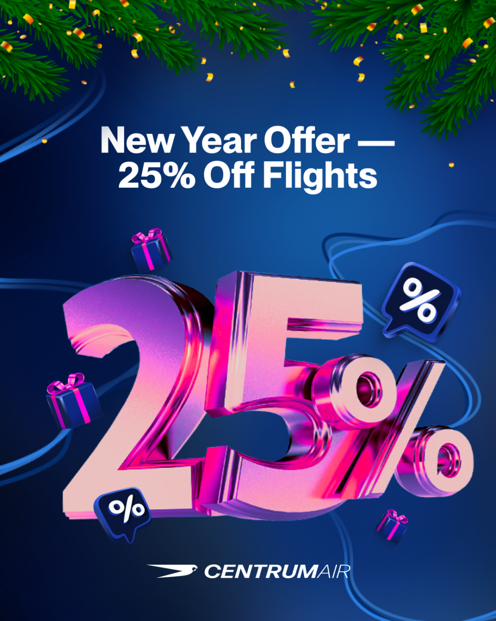 센트럼항공(Centrum Air)이 2026년 신년을 맞아 전 노선을 대상으로 한 25% 할인 프로모션을 진행한다.