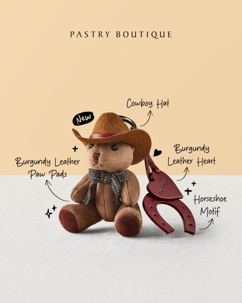 카우보이 모자를 착용한 신라베어에 행운과 보호를 상징하는 말굽 장식과 하트 참 디테일로 새해 덕담 의미를 더했다.