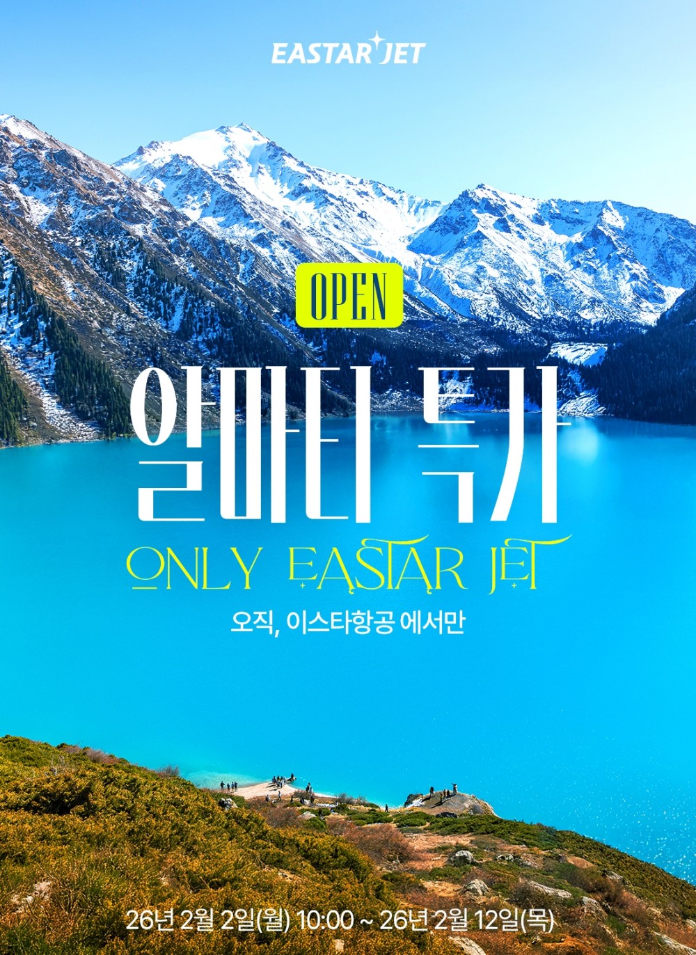 이번 프로모션은 2월 2일 오전 10시부터 홈페이지와 모바일 앱(웹)을 통해 실시된다. 공항이용세와 유류할증료를 포함한 편도 총액 최저가는 인천-알마티 199,400원, 부산-알마티 187,500원이며, 환율에 따라 일부 변동될 수 있다.
