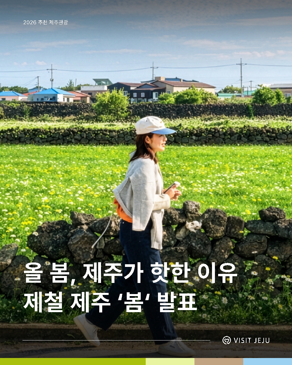 이번 콘텐츠는 제주의 봄을 대표하는 계절의 색을 따라 여행하는 방식이 특징으로 노란 유채꽃이 펼쳐진 들판에서 시작해 분홍빛 벚꽃이 물든 마을, 푸른 바다와 초록 들판으로 이어지는 봄의 색을 따라 여행 동선을 구성하여 관광객들이 제주의 계절 변화를 시각적으로 경험할 수 있도록 했다.
