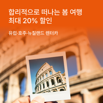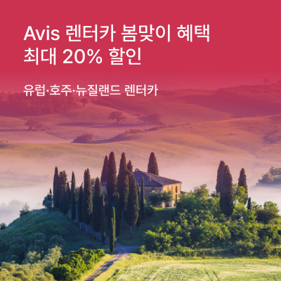 유럽, 호주, 뉴질랜드 지역 내 참여 지점에서 이용 가능하며, 에이비스렌터카 예약 시 AWD 코드 E853400, 버젯렌터카 예약 시 BCD 코드 D950600을 입력하면 할인 혜택이 적용된다.