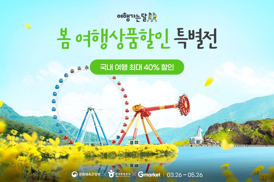 G마켓(Gmarket)이 문화체육관광부, 한국관광공사와 함께 5월 26일까지 봄 여행상품 할인 특별전을 진행한다. 봄나들이 시즌에 맞춰 국내 여행상품을 한데 모았다.
