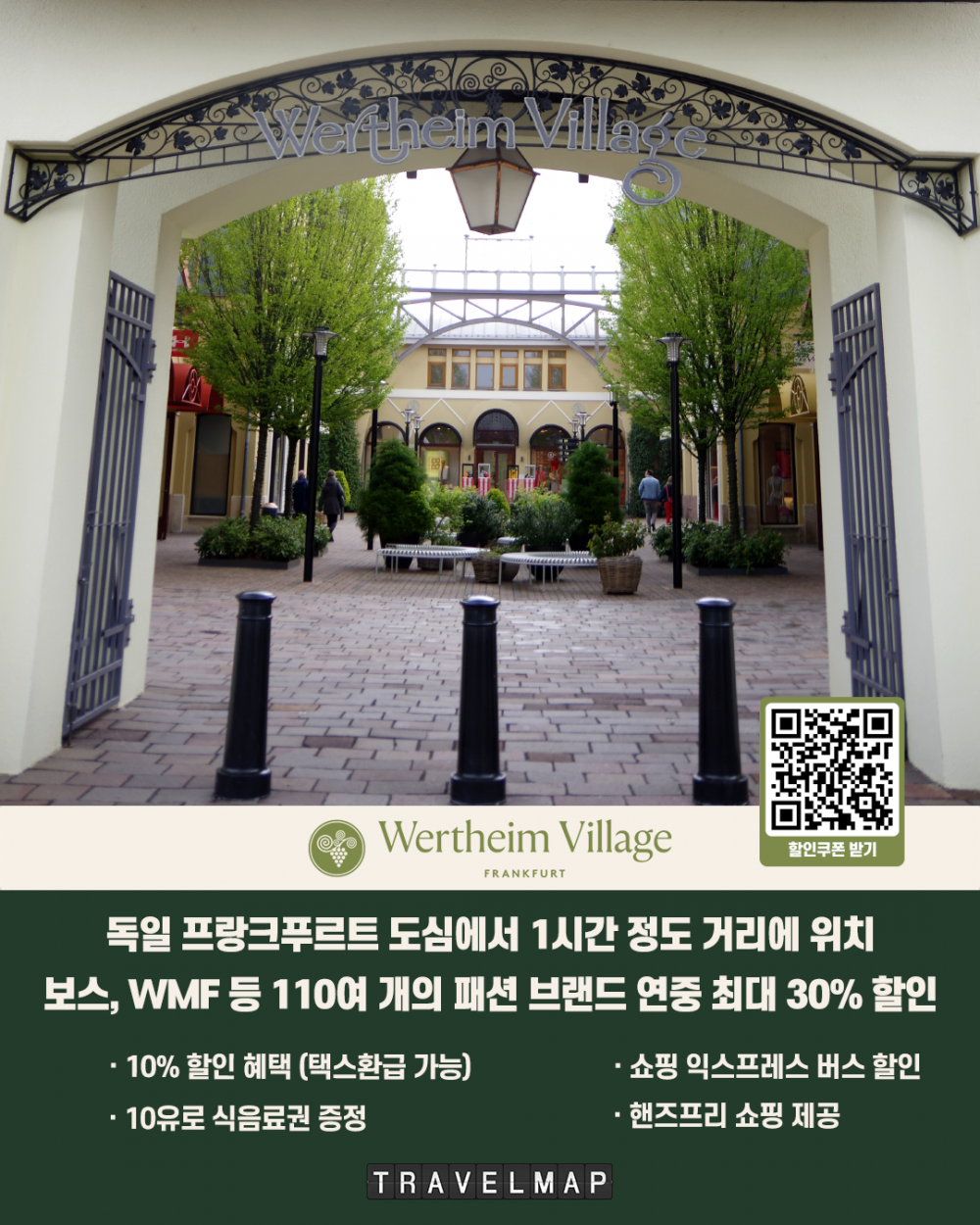 [트래블맵] 독일 프랑크푸르트 아울렛 베르트하임 빌리지(Wertheim Village) 프로모션ㅣ10% 할인쿠폰 & 10유로 식음료권 증정ㅣ쇼핑 익스프레스 버스 할인쿠폰