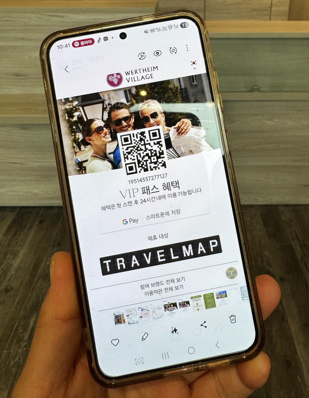또한, 트래블맵 X 베르트하임 빌리지 VIP 패스 QR코드 받으시면, 10유로 식음료권 받을 수 있습니다.