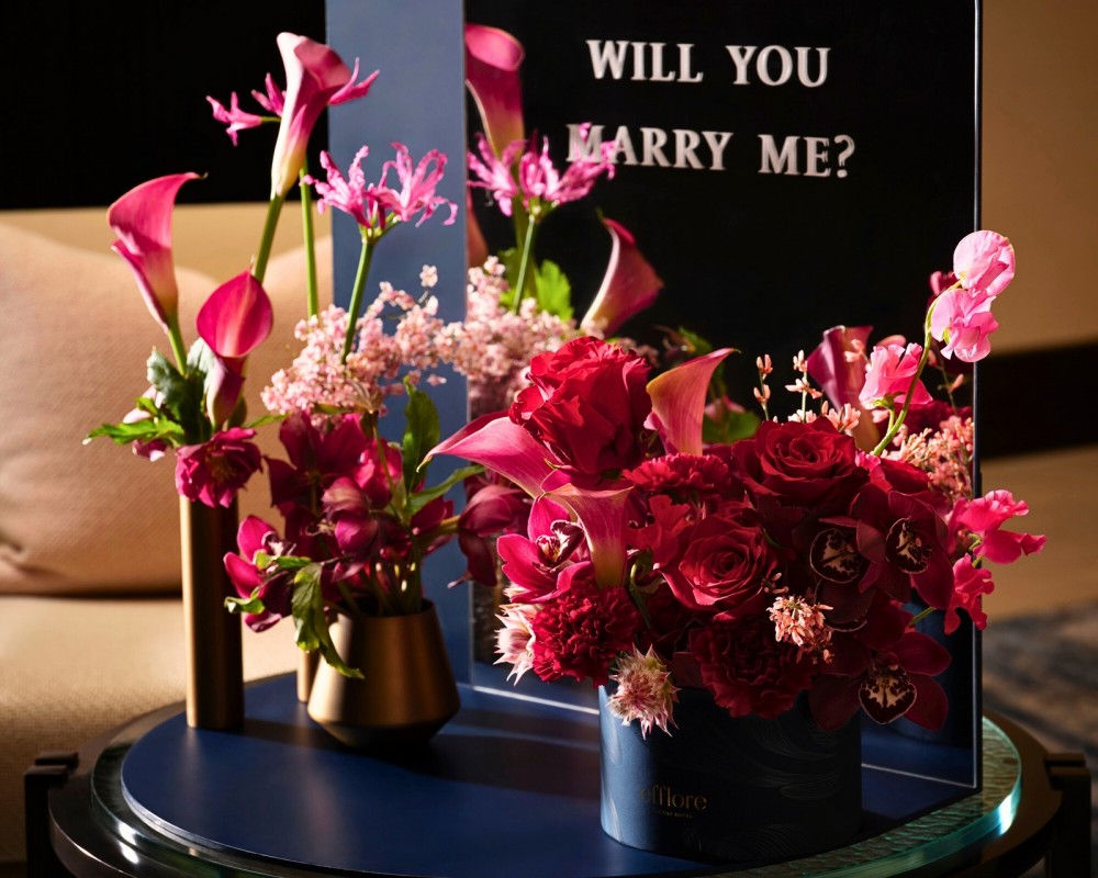해피 발렌타인 패키지는 게스트룸 1박과 함께 파르나스호텔의 하이엔드 플라워 브랜드 에플로어(efflore)가 제안하는 클래식 플라워 박스와 유리창 레터링 데커레이션으로 객실을 로맨틱한 공간으로 연출한다.