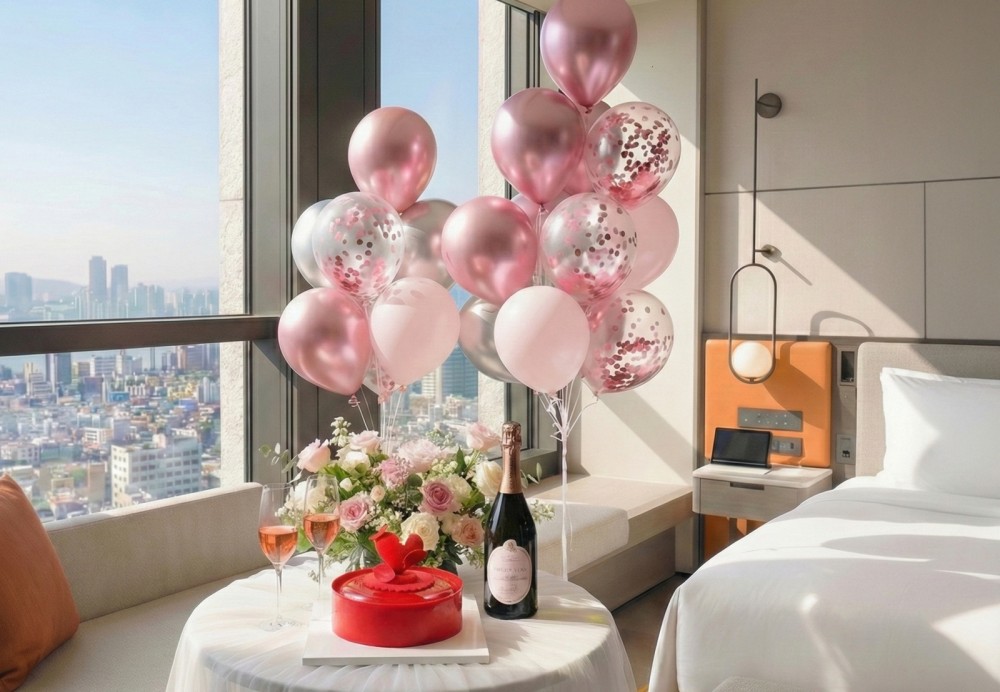 로맨틱 데이즈 패키지는 사랑하는 사람과 함께 특별한 하루를 보내고 싶은 고객들을 위해 기획된 로맨틱 콘셉트의 프로모션으로 객실 1박과 함께 JNSQ 로제 와인 1병, 하트 초코 무스 케이크가 제공된다. 은은한 풍미의 로제 와인과 부드러운 초콜릿 케이크는 달콤한 분위기를 더하며, 기념일을 더욱 특별하게 완성해준다.