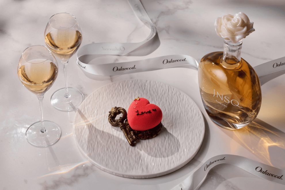 함께 제공되는 렘버스 로제 스파클링 와인은 섬세한 버블과 은은한 과실 향이 조화를 이루며, 달콤한 케이크와 완벽한 페어링으로 발렌타인 데이의 로맨틱한 순간을 더욱 특별하게 완성한다.