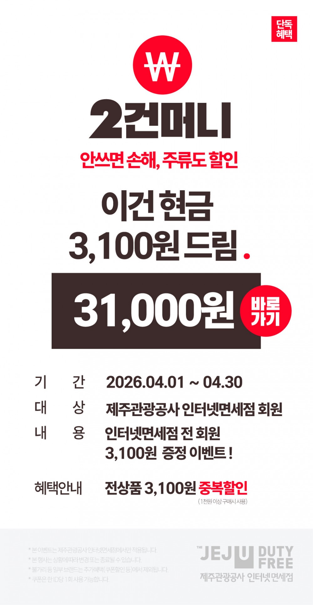 제주관광공사 면세점(JEJU DUTY FREE) 26년 4월 봄꽃세일 프로모션입니다.