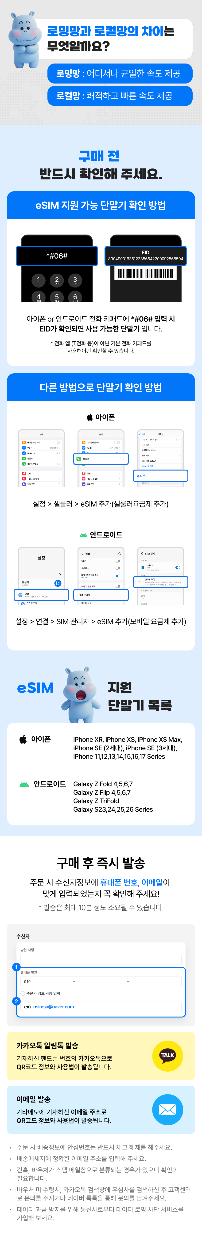 eSIM·USIM 선택 가능. 스마트폰 환경과 여행 스타일에 맞는 방식으로 고를 수 있습니다.