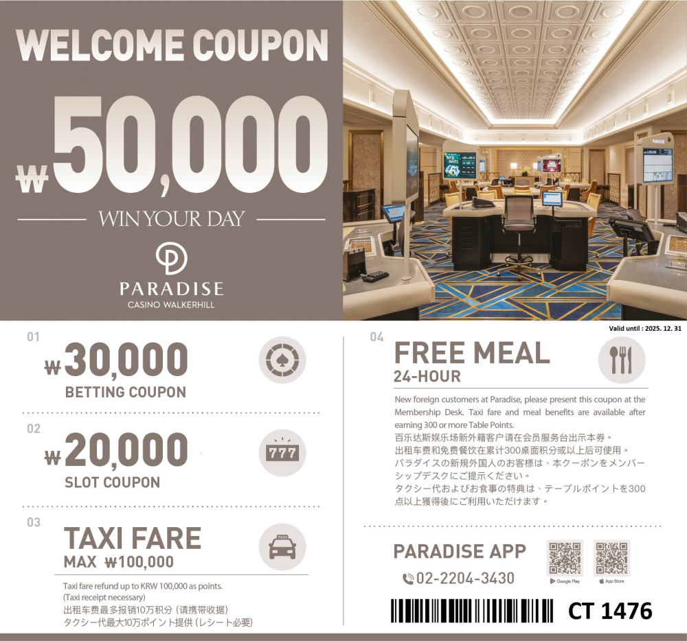 [트래블맵] 파라다이스 카지노 워커힐 (paradise casino walkerhill) 10만원 베팅쿠폰(*외국인전용)