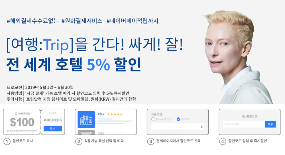 트립닷컴(trip.com) 전세계 호텔 5% 추가 할인할인율 5%