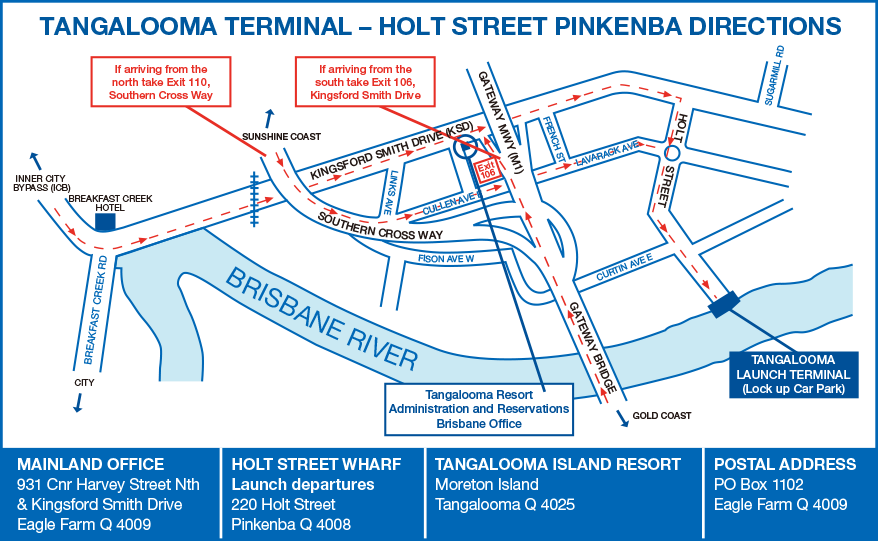 또한 브리즈번 국내, 국제공항에서 약 10분 정도, 브리즈번 시내에서 약 15분 정도 거리에 선착장 (Holt Street, Pinkenba)이 위치하고 있어 현지에 계시는 분들은 물론 국내, 해외에서 오시는 분들 또한 쉽게 찾아오실 수 있습니다.